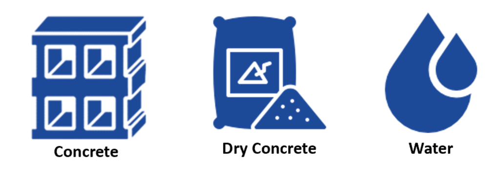 We are able to recycle together concrete (wet and old), and water. Recycling is both less expensive and more environmentally friendly than bringing it to the landfill. Recycled concrete can be used for road gravel, barriers, retaining walls, landscaping gravel, or as a raw material in the production of fresh concrete.