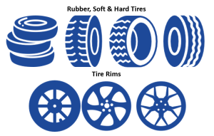 Tire and Rim Assemblies: Any tires and rims that are defective, not used or used including those from cars, trucks, other vehicles, bikes, and more.